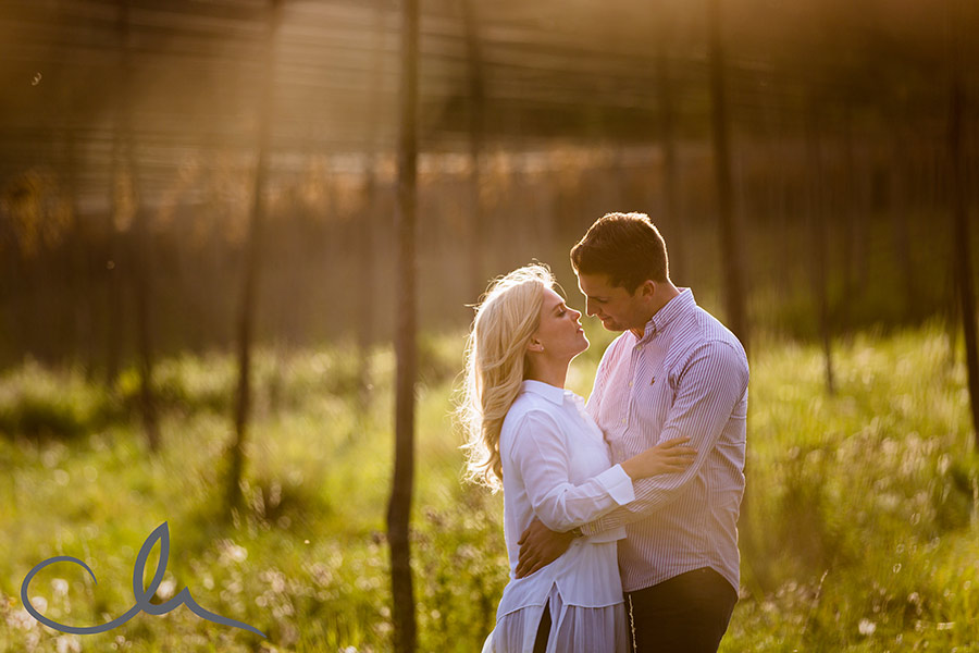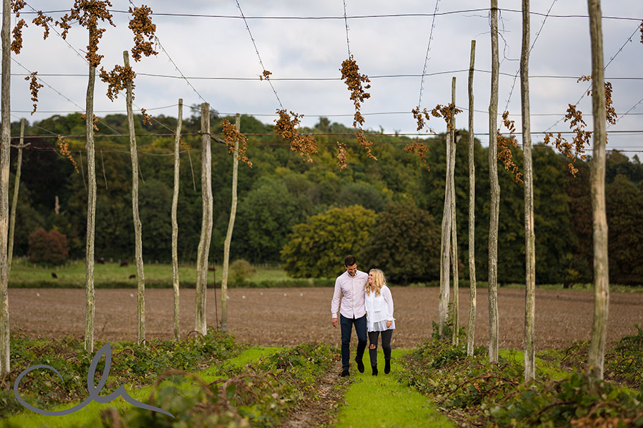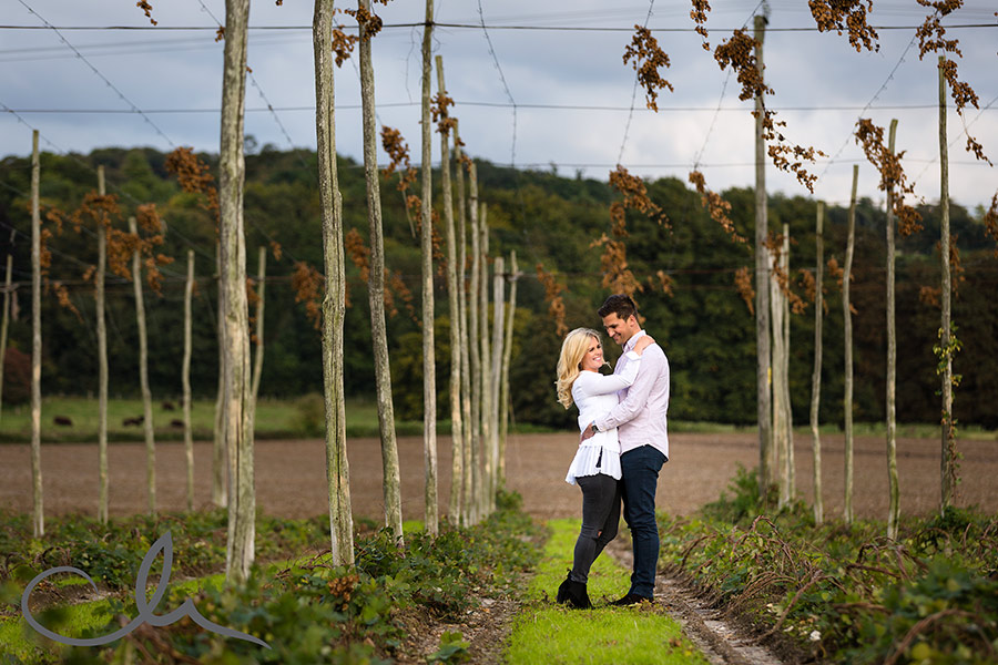 I’m so pleased to post some images from Tom and Anastasia’s countryside engagement shoot which took place last week. We only had a small window of opportunity for their engagement shoot before their wedding at The Old Kent Barn this Friday! Thankfully we had beautiful weather – so lucky. A setting sun can come with some challenges in terms of it’s strength and brightness but it also offers some wonderful creative opportunities too, as shown in the following images.