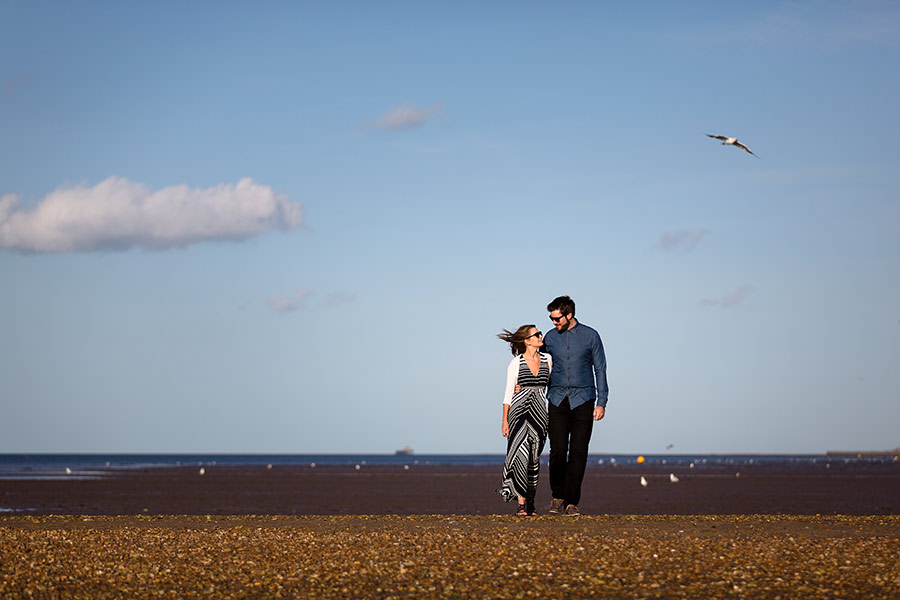 Ah bring back the warm sunny weather, although in short supply this year! Take me back to Tom and Claire’s engagement shoot at Whitstable at the end of August. I first met with Tom and Claire in the spring when we discussed their plans for their wedding at The Old Kent Barn next year and they had a look at various sample albums. Roll on to August and we met again after they had returned from a trip to Italy – so refreshed and sun-kissed, we met near the huts at Tankerton.