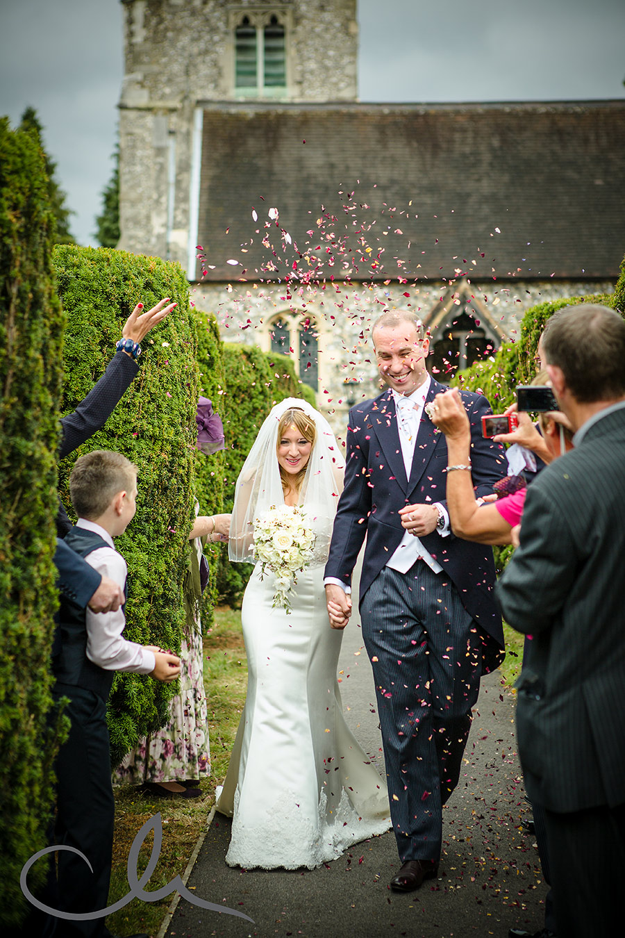 This shot was taken at La Mare Vine Yards in Jersey where Lydia and Peter cleverly improvised with blue hydrangea petals which the venue kindly said the couple could use from their beautiful gardens.