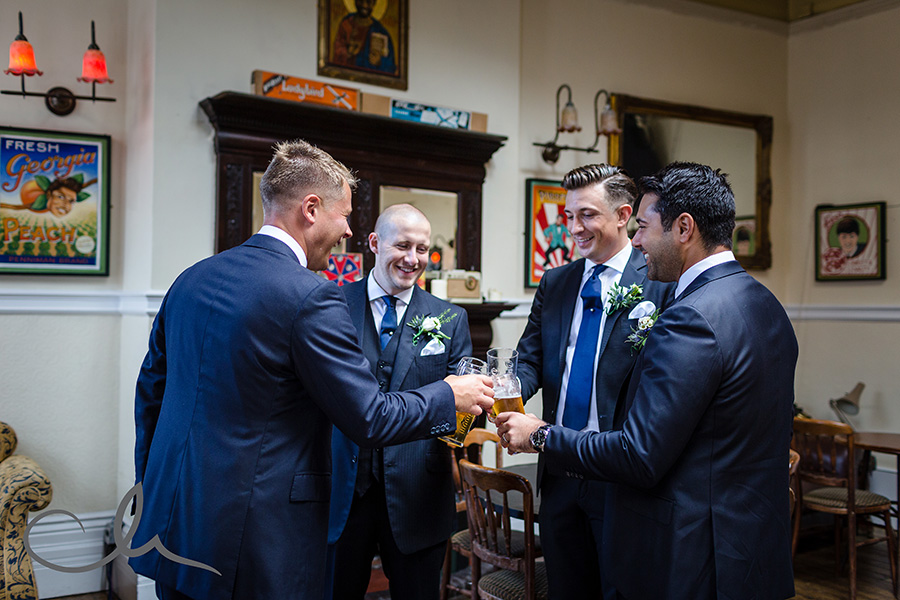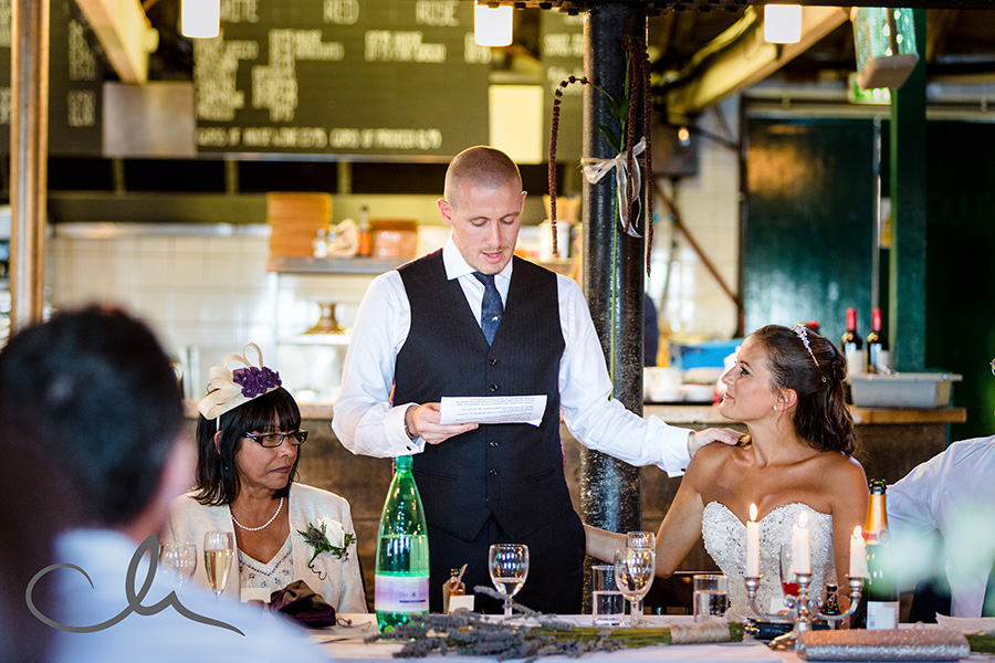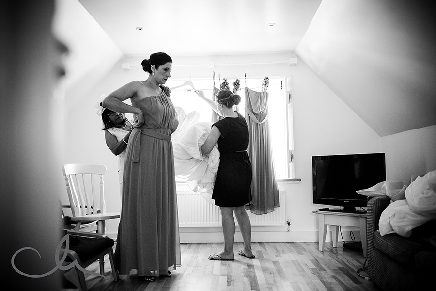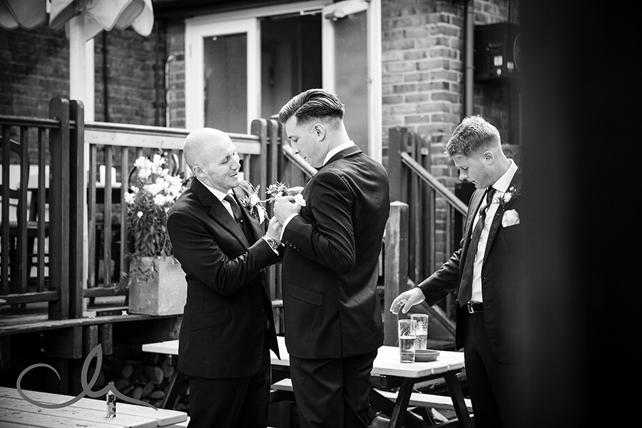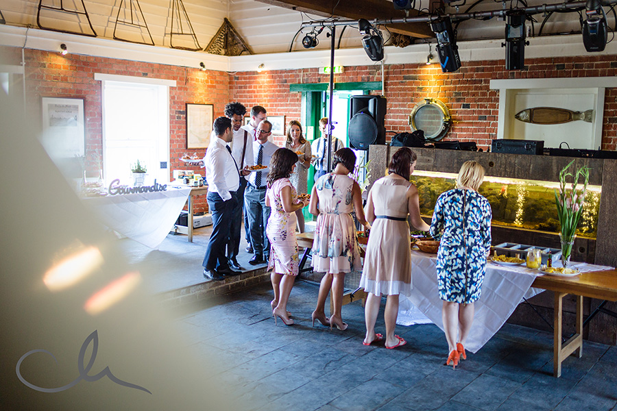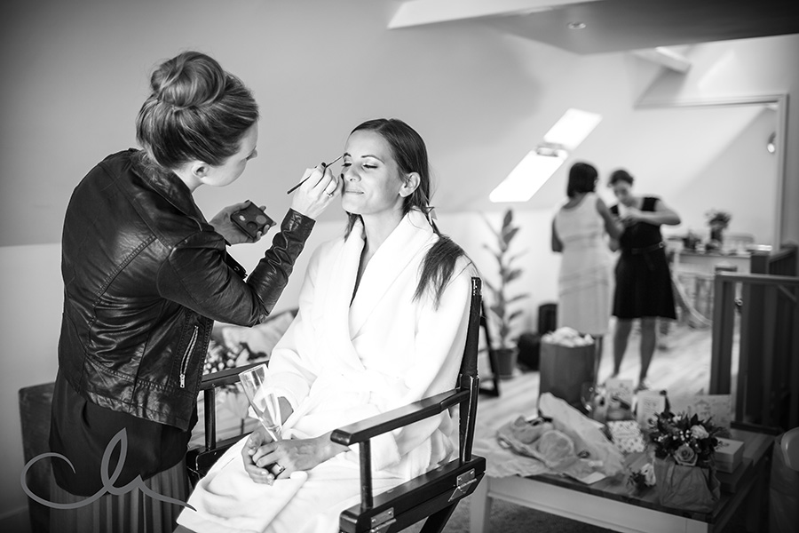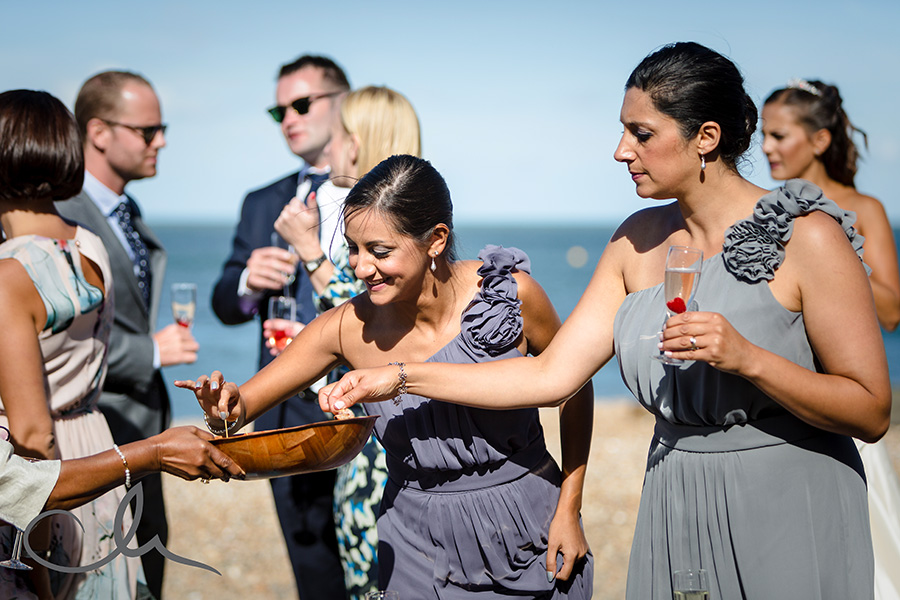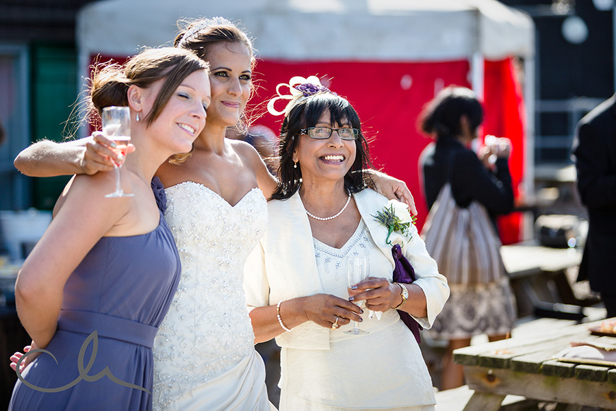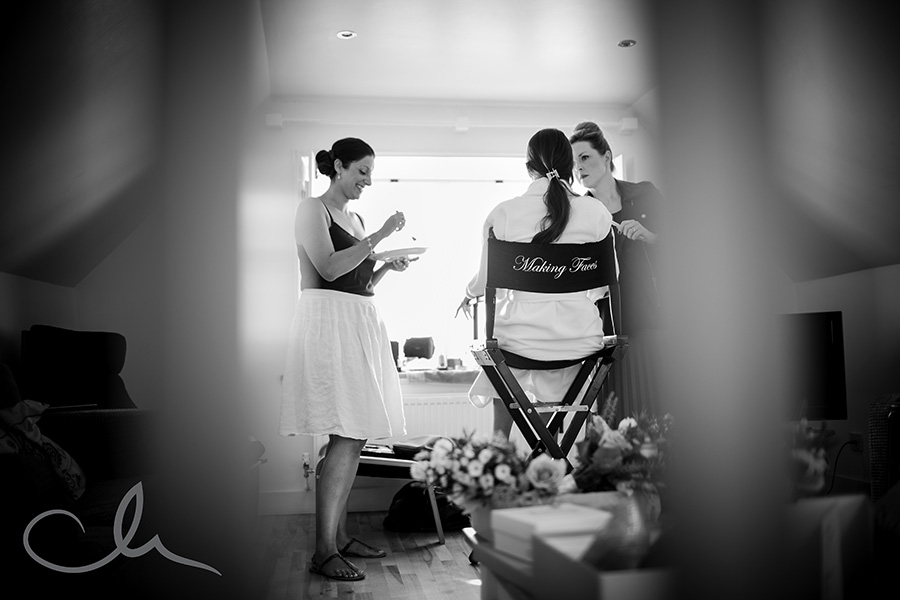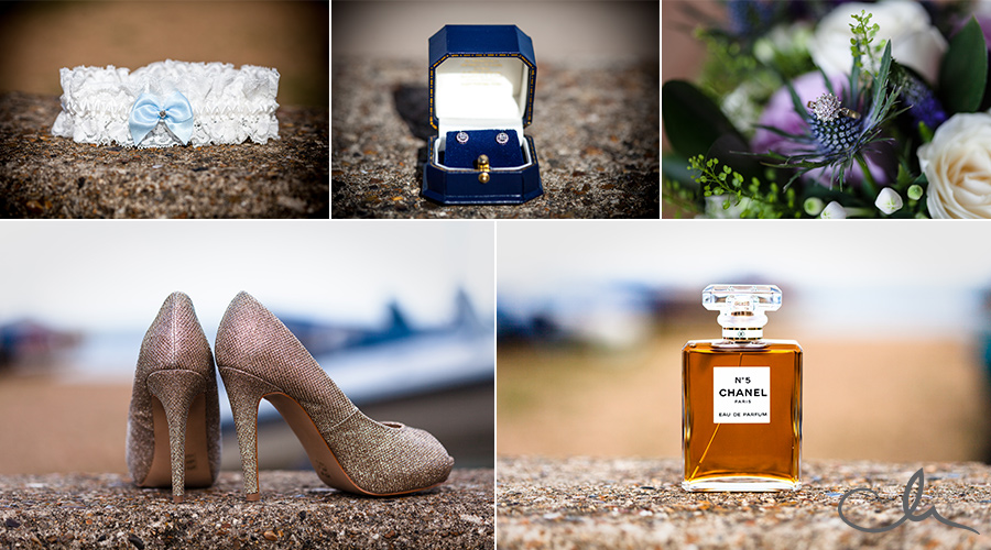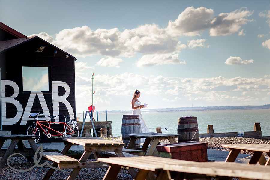 My day started off by meeting Collette, her family and bridesmaids at The Anderson Shed in Whitstable which is self contained accommodation on the beach front – a really popular spot. I arrived to Collette being fed breakfast by her cousin as she had her make up applied! And that was just the start of their food themed wedding day! Being a real ‘foodie’ myself, I really hit it off with Collette and Alex as it was evident early on that they have a passion for good food. As you’ll see from the images later on in this blog posting, food was plentiful and Collette had gone to a great deal of trouble to create a truly amazing table full of home baked sweets and confectionery from Paris which her family had brought over with them that day.