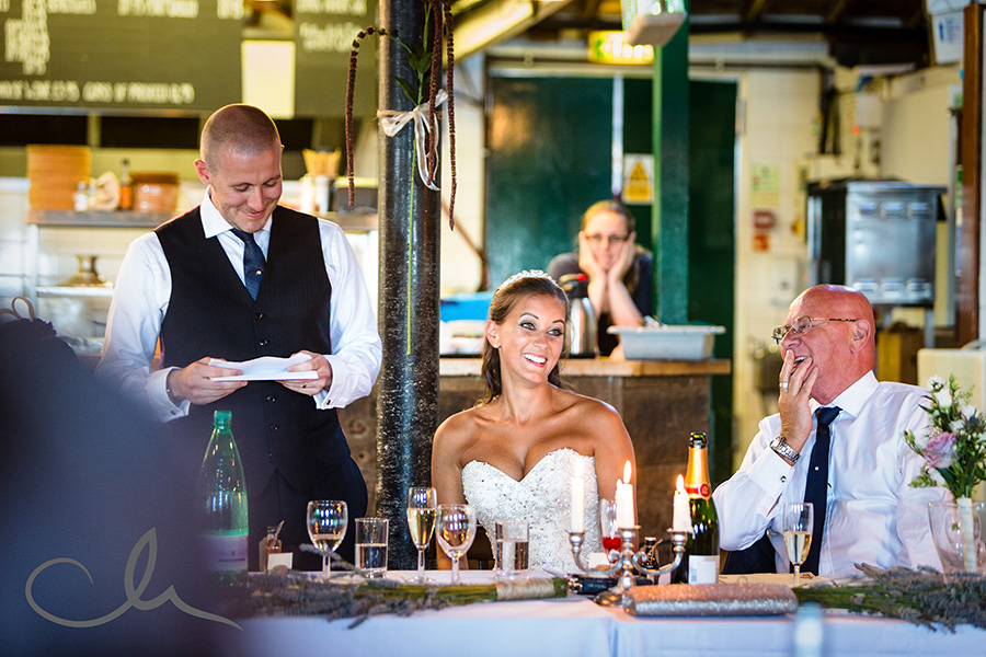 Collette and Alex had kept the menu for the wedding breakfast a surprise for their guests after discovering a chef in London, I believe, who cooked the most incredible paella. What with the entrée of king size prawns, sizzling scallops, manchego cheese and serreno ham and then choice of three desserts it was a wonderful feast.
